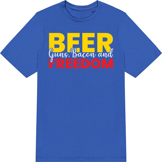 Beer Guns Bacon and Freedom – Unisex Graphic Tee | Perfect for Alcohol Enthusiasts