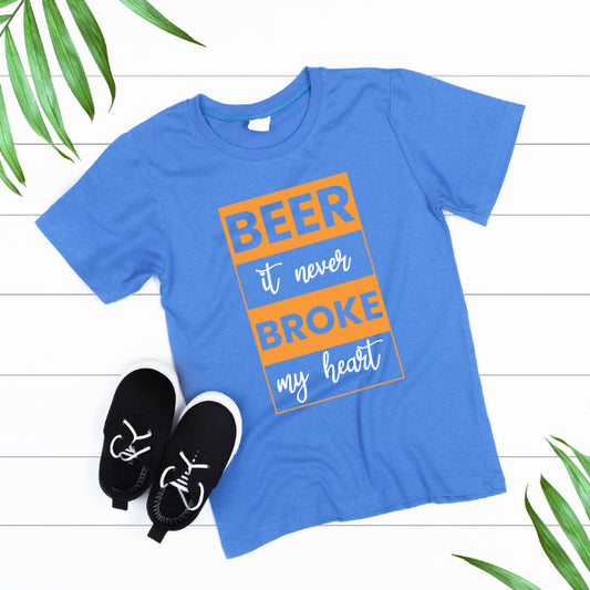 Beer It Never Broke My Heart – Unisex Graphic Tee | Perfect for Alcohol Enthusiasts