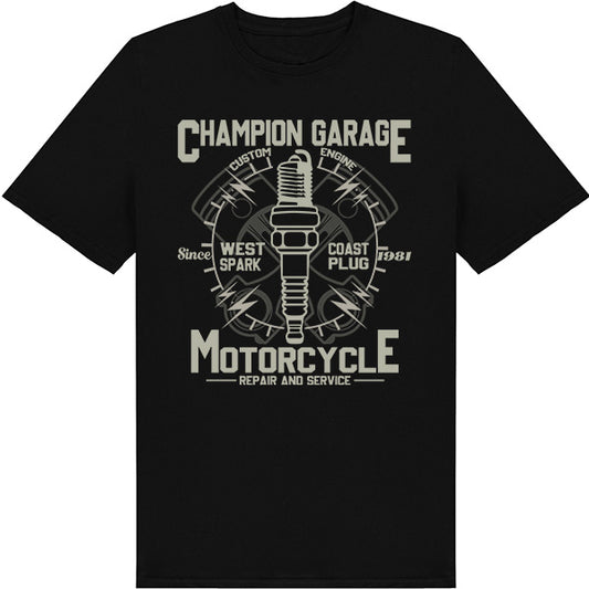 Champion Garage – Unisex Graphic Tee | Perfect for Motorbike Riders