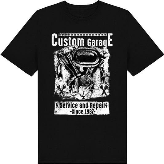 Custom Garage Service and Repair – Unisex Graphic Tee | Perfect for Motorcycle Enthusiasts