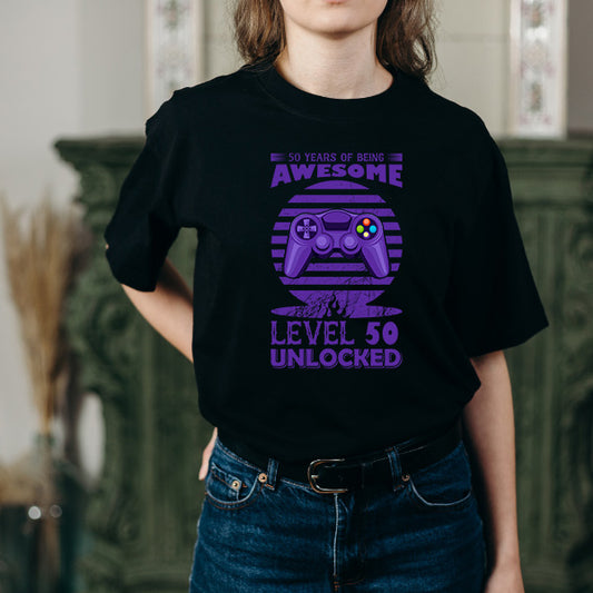 50 Years of Being Awesome Level 50 Unlocked – Unisex Graphic Tee | Premium Gaming Apparel