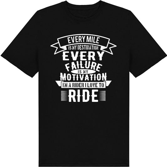 Every Mile Is My Destination Every Failure Is My Motivation – Unisex Graphic Tee | Ideal for Motorcycle Enthusiasts