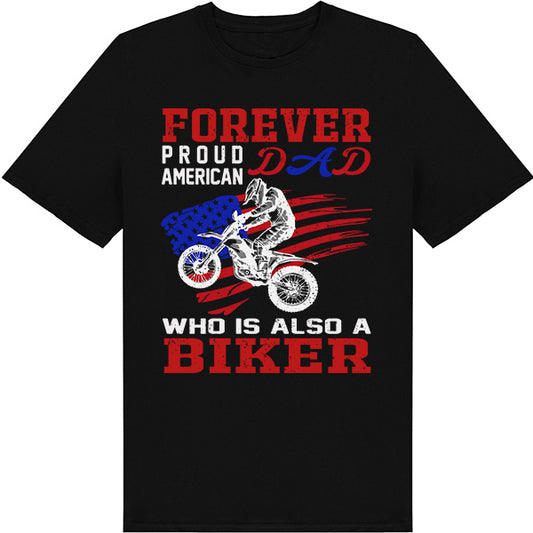Forever Proud of American Dad Who Is Also a Biker – Unisex Graphic Tee | Perfect for Motorcycle Enthusiasts