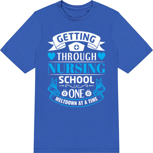 Getting Through Nursing School One Meltdown At A Time – Unisex Graphic Tee | Nurse Pride Collection