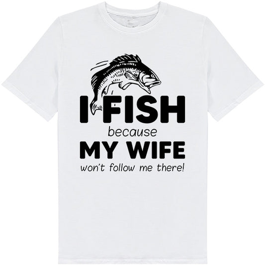 I Fish Because My Wife Won’t Follow Me There – Unisex Graphic Tee | Perfect for Fishing Enthusiasts