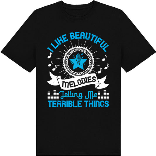 I Like Beautiful Melodies Telling Me Terrible Things – Unisex Graphic Tee | Perfect Gift for Music Enthusiasts