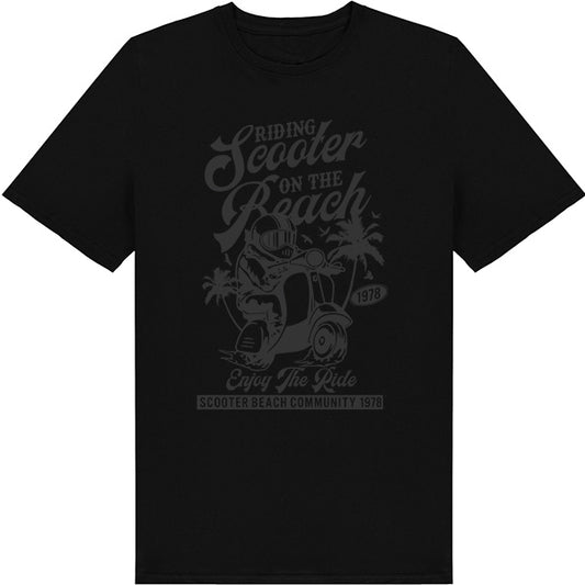 Riding Scooter on the Beach Enjoy the Ride – Unisex Graphic Tee