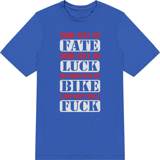 Some Rely On Fate Some Rely On Luck But When I'm On My Bike I Just Don't Give A Fuck – Unisex Graphic Tee | Perfect Gift for Motorcycle Enthusiasts