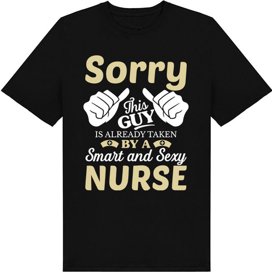 Sorry This Guy Is Already Taken By A Smart And Sexy Nurse – Unisex Graphic Tee | Nurse Pride Collection
