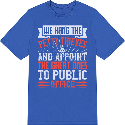 We Hang The Petty Thieves And Appoint The Great Ones To Public Office – Unisex Graphic Tee | Political Statement Apparel