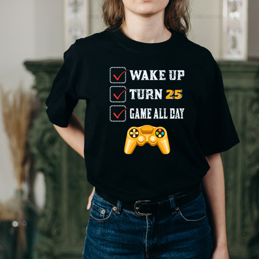 Wake Up Turn 25 Game All Day – Unisex Graphic Tee | Premium Gaming Apparel