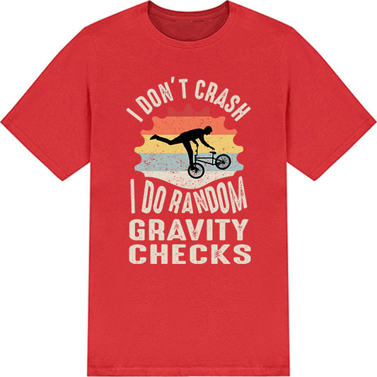 I Don’t Crash I Perform Random Gravity Checks – Unisex Graphic Tee | Perfect for Bicycle Enthusiasts