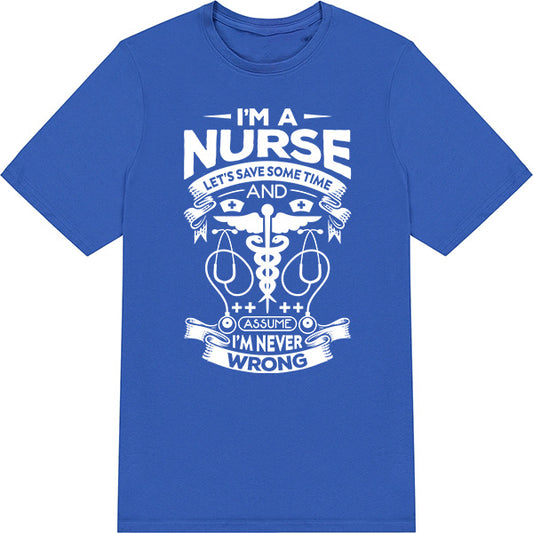 I'm a Nurse Let's Save Time and Assume I'm Never Wrong – Unisex Graphic Tee | Nurse Pride Collection